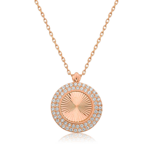 Silver Rose Oval Ruffle Women's Necklace The chic and sparkling modern necklace designed with zircon stones lined up around the oval ruffle pattern is a product that you can enjoy using at any time of the day, is sure to attract everyone's admiration and dazzle. This chic oval ruffle pattern women's necklace is a perfect option for a birthday gift, Valentine's Day gift or a gift for mothers on special occasions. Silver oval ruffle women's necklace is made of 925 sterling silver. Rose gold plated on this necklace. Rose gold plated silver oval ruffle women's necklace models preserve their shine for a long time. All of our products are handmade. Due to silver and precious stones, there may be a ± 10% deviation in the average product weight. Width: 1.50 cm Length: 1.50 cm Average Weight: 2.23 gr Chain Length: 45.00 cm