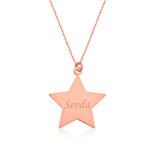 Silver Rose Personalized Named Star Necklace Reminiscent of the bright shine of the night, the star symbolically represents the infinity of the universe, a point in the distance. It is the symbol of shine, light, illumination and hope. Every love is special, every loved one is unique. Let the lifelong union of unique loves come to life on the skin of the woman you love with a personalized star figured necklace. Let the stars witness your love. All of our products are handmade. Personalized named star women's necklace model is made of 925 sterling silver. Rose plated on silver. Rose plated silver women's necklaces preserve their shine for a long time and delay oxidation. There may be ± 10% deviation from the average product weight due to silver and precious stones. Note: Returns are not accepted for personalized products. Width: 2.40 cm Length: 2.80 cm Weight: 3.10 gr.