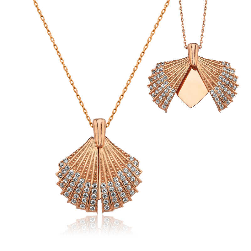 Silver Rose Personalized Oyster Women's Necklace Are you looking for a special gift for your lover? If you prefer simple elegance, an oyster necklace is just for you... You can gift this elegant personalized necklace to your lover or all your loved ones on your birthday, anniversary, New Year's Day or Valentine's Day. Rose plating is made on silver. Rose-plated silver women's necklaces preserve their shine for a long time and oxidation is delayed. As with all women's silver necklaces, the silver personalized oyster necklace is also handmade. Due to silver and precious stones, there may be ± 10% deviation in the average product weight. Width: 2.00 cm Length: 2.30 cm Avg. Weight: 4.85 gr.