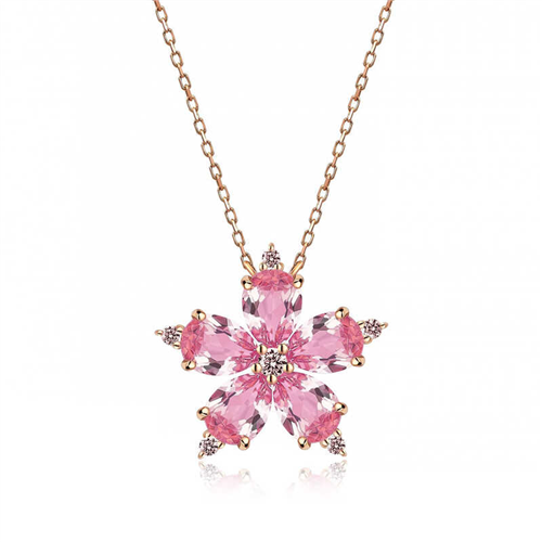 Silver Rose Pink Camellia Flower Necklace Let the sparkle of the necklace inspired by the fascinating camellia flower surround you. The camellia flower necklace made of sparkling stones is a perfect option for a birthday gift, Valentine's Day gift or for special occasions. Silver pink camellia flower women's necklace is made of 925 sterling silver. This necklace has rose plating. Rose-plated silver women's necklace models preserve their shine for a long time. As with all our silver women's necklace models, the silver pink camellia flower women's necklace model is also handmade. Due to silver and precious stones, there may be ± 10% deviation in the average product weight. Width: 1.60 cm Length: 1.60 cm Average Weight: 3.35 gr. Chain Length: 45.00 cm