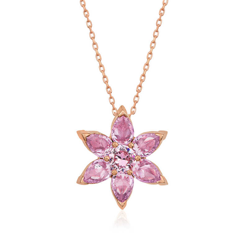 Silver Rose Pink Flower Necklace Why not express your feelings to your loved ones with an elegant floral patterned necklace? This stylish necklace, which is among the gift options that you can send to her on special occasions, is among the best ways to make your loved ones happy. Silver pink flower women's necklace crafted with the highest quality and most sparkling stones is waiting for those who want to express their love once again, for those who want to say "you are a flower." This specially designed silver pink flower women's necklace is made of 925 sterling silver. Rose plating is applied on the silver. Rose-plated silver women's necklace models preserve their shine for a long time and oxidation is delayed. The average silver chain length is 45 cm. Like all women's silver necklace models, the silver pink flower necklace is also handmade. Due to silver and precious stones, there may be a ± 10% deviation in the specified product weight. Width: 1.60 cm Length: 1.60 cm Average Weight: 4.00 gr.