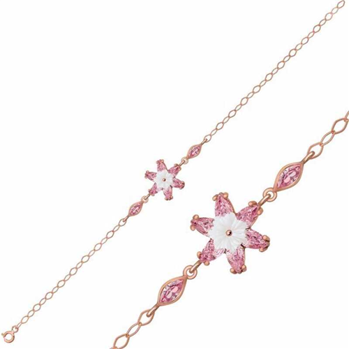 Silver Rose Pink Lotus Flower Bracelet The Lotus Flower is one of the most beautiful flowers that symbolizes spirituality, morality and cleansing. The lotus flower, which blooms in the polluted waters of the rainforests, has managed to become a symbol of beliefs such as Buddhism and Hinduism with its beauty and purity. Moreover, the lotus flower is considered sacred in many ancient civilizations. Another detail that makes the lotus flower special is the region where the flower grows. The lotus flower, which grows especially in swamps and muddy lands, can remain clean despite the dirty environment in which it grows. The lotus flower, which can clean even a single particle of dust that lands on it, greets those who meet it with a pure white beauty. You can gift the Silver Pink Lotus Flower Bracelet, which is considered sacred in different cultures, to your loved ones or you can treat yourself. This stylish Bracelet is a perfect option for a birthday gift, Valentine's Day or on special occasions. Bracelet; Made of 925 sterling silver. The stones on it are zircon. Rose plated silver. Like other bracelets, silver Pink lotus flower bracelets are produced by hand. Due to silver and precious stones, there may be ± 10% deviation from the average product weight. Width: 1.20 cm Length: 1.30 cm Bracelet Length: 21 cm Average Weight: 2.70 gr.