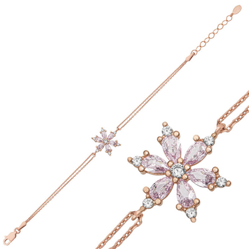 Silver Rose Pink Lotus Flower Women's Bracelet The Lotus Flower is one of the most beautiful flowers that symbolizes spirituality, morality and cleansing. The lotus flower, which blooms in the polluted waters of the rainforests, has managed to become a symbol of beliefs such as Buddhism and Hinduism with its beauty and purity. Moreover, the lotus flower is considered sacred in many ancient civilizations. Another detail that makes the lotus flower special is the region where the flower grows. The lotus flower, which grows especially in swamps and muddy lands, can remain clean despite the dirty environment in which it grows. The lotus flower, which can clean even a single particle of dust that lands on it, greets those who meet it with a pure white beauty. You can gift the silver pink lotus flower Bracelet, which is considered sacred in different cultures, to your loved ones or to treat yourself. This stylish Bracelet is a perfect option for a birthday gift, Valentine's Day or special occasions. Bracelet; Made of 925 sterling silver. The stones on it are zircon. Rose plated silver. Like other bracelets, silver pink lotus flower bracelets are produced by hand. Due to silver and precious stones, there may be ± 10% deviation from the average product weight. Width: 1.60 cm Length: 2.10 cm Bracelet length: 19 cm Average Weight: 2.30 gr.