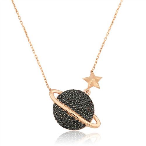 Silver Rose Planet Women's Necklace How about if all existence; the moon and the stars revolve around your love just as the planets revolve around the sun? The necklace designed with this elegance in mind is a perfect option for a birthday gift, Valentine's Day or as a gift for mothers on special occasions. The necklace is made of 925 sterling silver. The chain length of the silver necklace is 45 cm. Rose gold plated on silver. Rose plated women's necklaces preserve their shine for a long time, turn the silver color into pink and delay oxidation. As with all silver necklaces, the silver planet women's necklace is produced by hand. The stones on it are zircon. There may be ± 10% deviation in the specified product weight due to silver and precious stones. Width: 2.30 cm. Height: 2.40 cm. Average Weight: 3.35 gr.