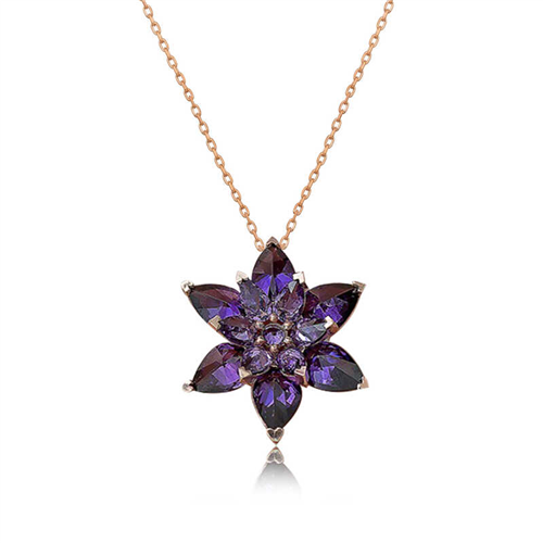 Silver Rose Purple Lotus Flower Necklace The Lotus Flower is one of the most beautiful flowers that symbolizes spirituality, morality, and cleansing. The lotus flower, which blooms in the polluted waters of the rainforest, has managed to become a symbol of beliefs such as Buddhism and Hinduism with its beauty and purity. Moreover, the lotus flower is considered sacred in many ancient civilizations. Another detail that makes the lotus flower special is the region in which the flower grows. The lotus flower, which grows especially in swamps and muddy lands, can remain clean despite the polluted environment in which it grows. Able to clean even a single particle of dust that lands on it, the lotus flower greets those who encounter it with pure beauty. You can gift the silver purple lotus flower necklace, which is considered sacred in different cultures, to your loved ones or to treat yourself. This stylish necklace is a perfect option for a birthday gift, Valentine's Day or special occasions. The necklace is made of 925 sterling silver. The silver is rose plated. Like other necklaces, the silver purple lotus flower necklace is also handmade. Due to silver and precious stones, there may be a ± 10% deviation from the average product weight. Width: 1.60 cm Length: 1.60 cm Average Weight: 4.40 gr. Chain Length: 45.00 cm