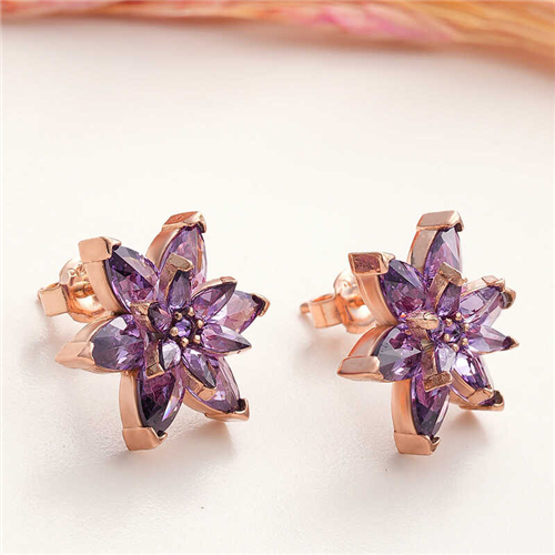 Silver Rose Purple Lotus Flower Studded Women's EarringsThe lotus flower is one of the most beautiful flowers that symbolizes spirituality, morality, and cleansing. The lotus flower, which blooms in the polluted waters of the rainforest, has managed to become a symbol of beliefs such as Buddhism and Hinduism with its beauty and purity. Moreover, the lotus flower is considered sacred in many ancient civilizations. Another detail that makes the lotus flower special is the region in which the flower grows. The lotus flower, which grows especially in swamps and muddy lands, can remain clean despite the polluted environment in which it grows. Able to clean even a single particle of dust that lands on it, the lotus flower greets those who encounter it with pure beauty. You can gift your loved ones or treat yourself with these silver Purple lotus flower studded women's earrings, which are considered sacred in different cultures. These stylish earrings are a perfect option for a birthday gift, Valentine's Day or special occasions. The earrings are made of 925 sterling silver. Rose plated silver. Like other earrings, the silver Purple Lotus flower earring is also handmade. Due to silver and precious stones, there may be a ± 10% deviation from the average product weight.Width: 1.80 cmLength: 1.90 cmAverage Weight: 6.30 gr.