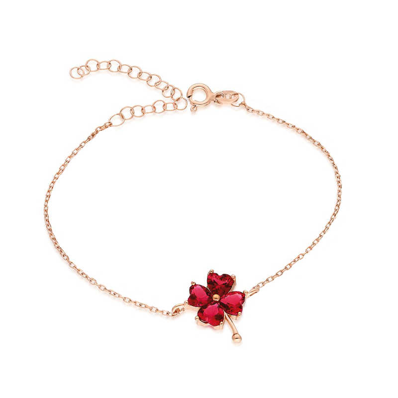Silver Rose Red Heart Clover Women's Bracelet The four-leaf clover is considered a symbol of good luck in all cultures. Each of the four leaves of the clover has a different meaning. The first leaf symbolizes hope, the second symbolizes faith, the third symbolizes love, and the fourth leaf symbolizes luck. This specially designed women's bracelet model featuring a heart clover is made of 925 sterling silver. This elegant bracelet will be a very stylish option for young lovers on special occasions. The silver red heart clover women's bracelet has rose plating. Rose-plated silver women's bracelets preserve their shine for a long time, give the silver a pink color, and delay oxidation. The silver red heart clover women's bracelet will be one of the most beautiful gifts that you and your loved ones will enjoy wearing. Like all our silver women's bracelet models, the silver red heart clover women's bracelet is also handmade. Due to silver and precious stones, there may be a ± 10% deviation in the specified product weight. Width: 1.00 cm Length: 1.00 cm Weight: 1.27 gr. Bracelet Length: 19.50 cm
