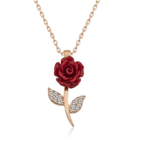 Silver Rose Red Rose Necklace Red roses have appeared in different cultures throughout history and carried religious or political symbols. The red rose has inspired poems and paintings throughout history. However, the red rose is the symbol of love and is best known for this. The red rose means love and loyalty. The meaning of a single red rose means “I love you”. You can gift a silver red rose necklace to your loved one to express your love and make them feel your love on their skin. This stylish necklace is a perfect option for a birthday gift, Valentine's Day or special occasions. The necklace is made of 925 sterling silver. Rose plating is applied to silver. Rose plating gives the silver a pink copper color. Like other necklaces, the silver red rose necklace is produced by hand. Due to silver and precious stones, there may be a ± 10% deviation in the average product weight. Width: 1.00 cm Length: 2.00 cm Average Weight: 2.00 gr.