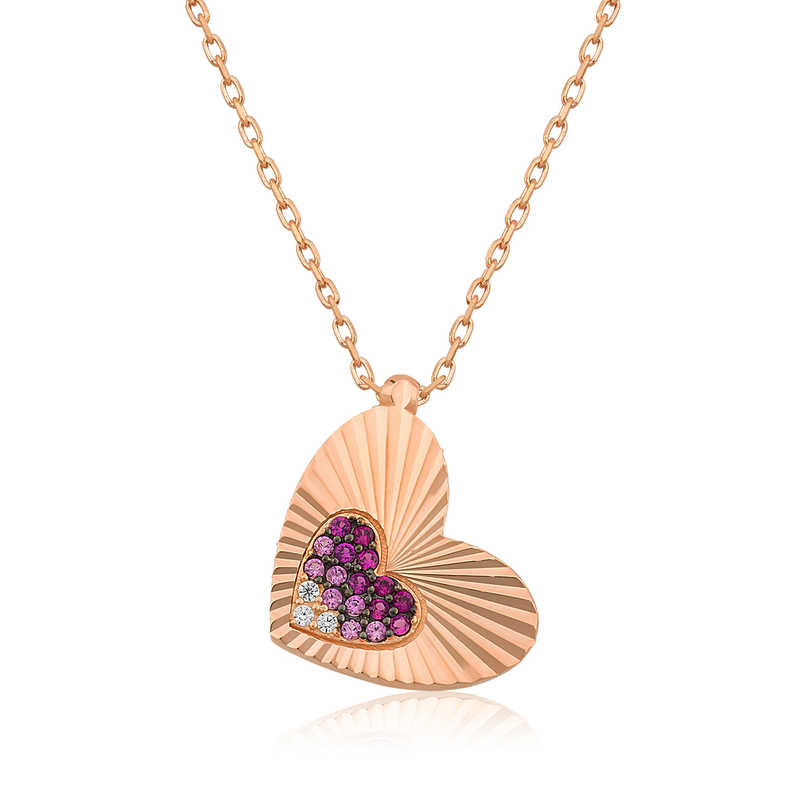 Silver Rose Ruffle Heart Women's Necklace The heart symbol has always been the symbol of unconditional love and affection. In religious teachings, the power of the heart is limitless. Because the heart is the home of the Creator and our gateway to reality that opens to the universe. Two heart necklaces are one of the most stylish and meaningful necklaces that will represent you and your loved one. This stylish ruffle heart women's necklace is a perfect option for a birthday gift, Valentine's Day gift or a gift for mothers on special occasions. Silver zircon stone ruffle heart women's necklace is made of 925 sterling silver. This necklace is rose plated. Rose plated silver ruffle heart women's necklace models preserve their shine for a long time. The pink stones on it are zircon. Like all silver women's necklace models, the silver ruffle heart women's necklace is also handmade. Due to silver and precious stones, there may be ± 10% deviation in the average product weight. Width: 1.30 cm Length: 1.50 cm Average Weight: 1.92 gr Chain Length: 45.00 cm