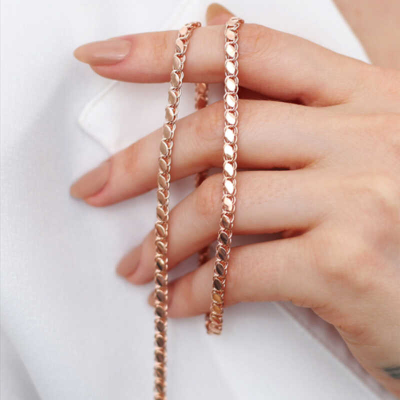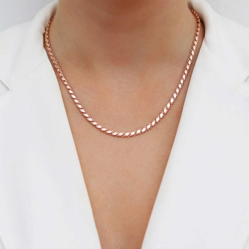 Silver Rose Sequined Barley Chain Chain necklaces, preferred by women who want to look well-groomed in their daily lives, add elegance to even the simplest outfits. Sequined barley chain necklaces continue to impress with their elegance and chic. Chain necklaces, which can be used with any combination, from stylish to sporty, have a wide range of uses, allowing you to create your style freely. Rose plating is made on the silver sequined barley chain. The color of the silver plated silver turns pink. As with all our silver models, the silver rose sequined barley chain model is produced entirely by hand. Due to silver and precious stones, there may be ± 10% deviation in the average product weight. Width: 0.4 mm Length: 55 cm Avg. Weight: 25.50 gr.