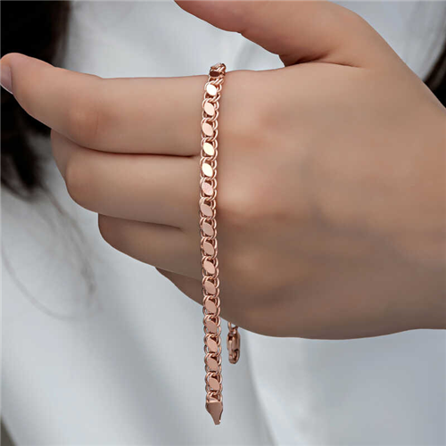 Silver Rose Sequined Chain Women's BraceletChain bracelets, the choice of women who want to look well-groomed in their daily lives, add elegance to even the simplest outfits. Sequined chain bracelets continue to impress with their elegance and chic. Chain bracelets, which can be used with any combination, from stylish to sporty, have a wide range of uses, allowing you to create your style freely. Rose coating is made on the silver sequined chain bracelet. Rose coating delays the tarnishing of the silver. As with all our silver models, the silver sequined chain bracelet model is produced entirely by hand. Due to silver and precious stones, there may be ± 10% deviation from the average product weight.Width: 0.50 mmBracelet Length: 19 cmAvg. Weight: 8.50 gr.