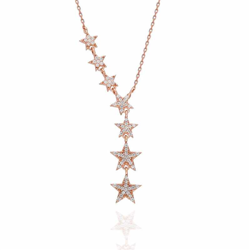 Silver Rose Shooting Stars Women's Necklace Reminiscent of the bright shine of the night, the star symbolically represents the infinity of the universe, a point in the distance. It is the symbol of shine, light, illumination, and hope. Every person is special, every loved one is unique. How about making your loved ones happy with a silver row of stars women's necklace, the symbol of unique love and lifelong togetherness... The necklace is made of 925 sterling silver. Rose plated on silver. Rose plated silver necklaces preserve their shine for a long time and delay oxidation. The white stones on it are zircon. Like all silver women's necklace models, the silver shooting stars women's necklace model is also produced by hand. Due to silver and precious stones, there may be a ± 10% deviation in the average product weight. Width: 1.00 cm Length: 1.00 cm Average Weight: 3.50 gr.