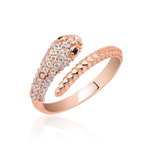 Silver Rose Snake RingThe snake is a very popular concept in mythology. Many cultures attribute different meanings to the snake. Its life cycle and the unfavorable conditions it endures, its ability to emerge from underground holes and regenerate itself by shedding bloodlessly from its outer surface, have often led people to perceive it as an animal that holds the secret of death and rebirth. For the same reason, it has also been associated with medicine. Furthermore, the snake's ability to swallow food whole and store it in its belly for long periods has been identified with the "return to the mother's womb," and for this reason, the snake has come to symbolize rebirth following death and assumed the role of "creator" in many mythologies. You can gift a silver rose snake ring, which carries different meanings in different cultures, to your loved ones or to treat yourself. This stylish ring is a perfect choice for a birthday gift, Valentine's Day, or special occasions. The ring is made of 925 sterling silver. It is an adjustable ring according to finger thickness. Rose plated silver. Like other rings, the silver rose snake ring is also handmade. Due to the silver and precious stones, there may be a ± 10% deviation from the average product weight.Width: 1.00 cmLength: 1.50 cmAverage Weight: 3.20 gr.