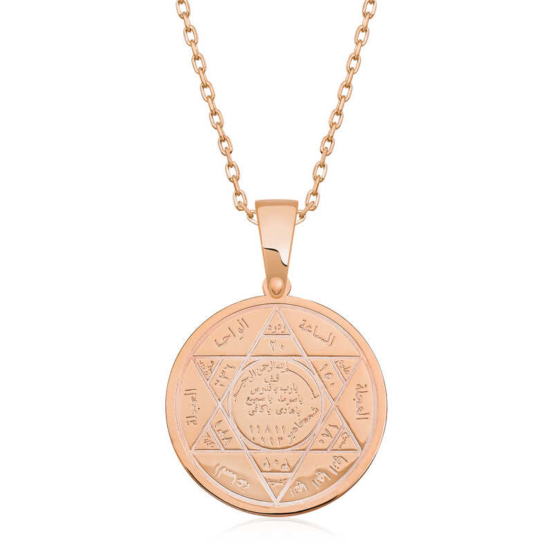 Silver Rose Solomon Seal Necklace We cannot end the wisdom of the Solomon seal, also known as the star of David or the six-pointed star. No magic affects the person who carries the seal. The person is protected from all kinds of evil eyes. It has many healing properties such as not affecting the person who carries it. The necklace is made of 925 sterling silver. Rose plated silver. Rose plated silver necklaces preserve their shine for a long time. As with all silver women's necklaces, the silver Solomon seal necklace is also handmade. Due to silver and precious stones, there may be ± 10% deviation in the average product weight. Width: 2.60 cm Length: 3.80 cm Avg. Weight: 8.50 gr.