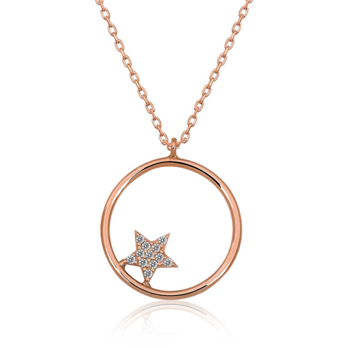 Silver Rose Star Detailed Hoop Necklace Reminiscent of the bright shine of the night, the star is the symbol of shine, light, illumination and hope. This stylish necklace is made of 925 sterling silver. The silver star detailed hoop necklace, which you and your loved ones will enjoy wearing, is a perfect option as a birthday gift, Valentine's Day gift or a gift for mothers on special occasions. Rose gold plated on silver. Rose gold plated women's products preserve their shine for a long time and oxidation is delayed. The stones on it are zircon. As with all silver necklaces, the silver star detailed ring necklace model is also produced by hand. Due to silver and precious stones, there may be ± 10% deviation in the specified product weight. Width: 2.00 cm Length: 2.00 cm Average Weight: 2.20 gr.
