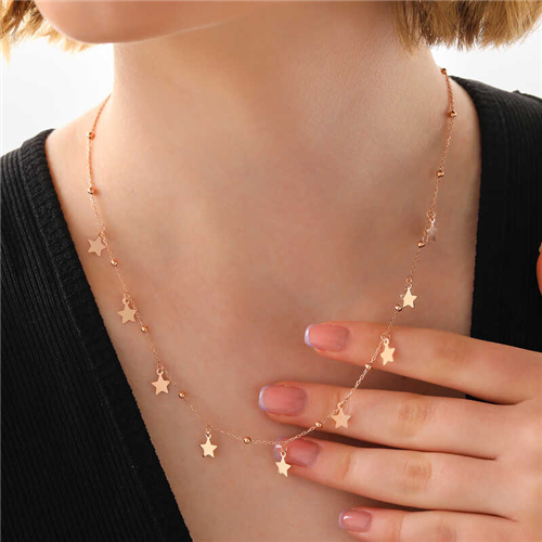 Silver Rose Star Dorika Women's Necklace The unique reflection of Italian design in silver necklaces, Dorika stone jewelry, is one of the rising jewelry trends of recent years. By browsing our category among dozens of models, you can choose the most suitable ones for you and add a stylish touch to your style. With its extraordinary looks, Dorika will create a unique harmony with your combinations, everyday clothes and dresses for special occasions. All eyes will be on you and you will be the center of attention wherever you are. You can choose this model, which is always popular and does not compromise on its elegance, as a birthday gift, Valentine's Day gift or a gift for mothers on special occasions. Silver star Dorika women's necklace is made of 925 sterling silver. Rose plated silver. Rose plated silver women's necklaces preserve their shine for a long time and oxidation is delayed. Like all silver women's necklace models, this silver star Dorika women's necklace model is produced entirely by hand. Due to silver and precious stones, there may be a ± 10% deviation in the average product weight. Star Width: 0.70 cm Star Length: 0.80 cm Chain Length: 45.00 cm Average Weight: 3 gr.