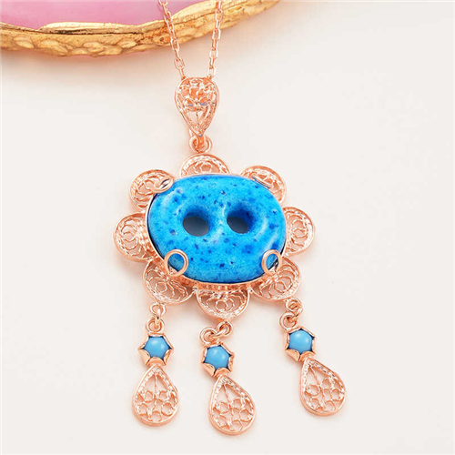 Silver Rose Syriac Eye Women's Necklace The evil eye bead of the Syriac eye necklace is entirely handcrafted and made by Syriac masters. It is made of 925 sterling silver. The stone is Iranian turquoise, the meaning of the two holes on the stone represents two eyes. This product with a different design is rare and elegant and is among the most appreciated. All of our products are handmade. Due to silver and precious stones, there may be ± 10% deviation in the average product weight. Necklace Width: 2.40 cm Necklace Length: 3.50 cm Chain Length: 50 cm Avg. Weight: 6 gr.