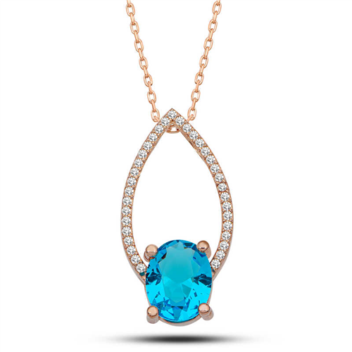 Silver Rose Turquoise Oval Stone Women's Necklace You will love using this necklace, which reminds me of stars with its sparkling stones, that you can choose in everyday life, special occasions and nights. This timeless silver necklace with stones that will never go out of style is waiting for you, appealing to all women who want to create a stylish look. Silver turquoise oval stone women's necklace is a perfect option for a birthday gift, Valentine's Day gift or as a gift for mothers on special occasions. Turquoise oval stone women's necklace is made of 925 sterling silver. Rose plated silver. Rose plated women's necklaces preserve their shine for a long time and delay oxidation. The stones on it are zircon. The average chain length is 45 cm. Like all women's necklaces, the silver turquoise oval stone women's necklace is also handmade. Due to silver and precious stones, there may be a ± 10% deviation in the average product weight. Width: 1.40 cm Length: 2.60 cm Average Weight: 3.90 gr.