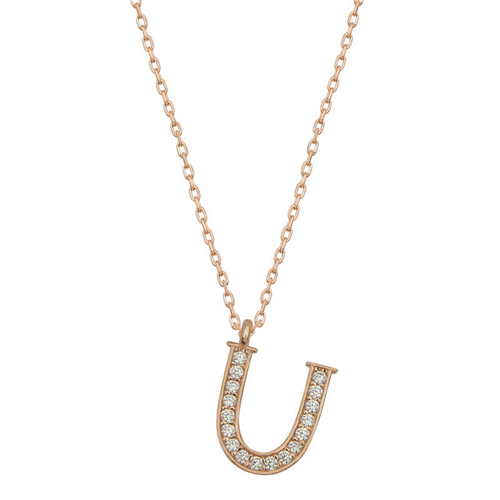 Silver Rose U Letter Women's Necklace With silver letter necklaces, those who are precious to you are always with you... Decorate your loved one's neck with love with this special necklace model that young lovers can choose on special occasions. A silver letter necklace that your loved ones will wear with pleasure will be one of the most meaningful gifts. The letter women's necklace model is made of 925 sterling silver. Rose plated silver. Rose plated silver women's necklace models preserve their shine for a long time. As with all of our products, the silver women's letter necklace model is handmade. Due to silver and precious stones, there may be ± 10% deviation from the average product weight. Width: 0.80 cm Length: 1.10 cm Avg. Weight: 1.30 g
