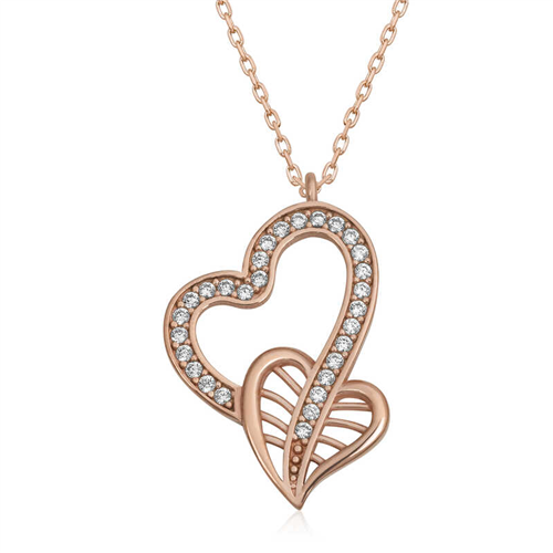 Silver Rose United Hearts Women's Necklace Let your love come to life on the skin of the woman you love with the silver heart women's necklace model that expresses love with its heart pattern. Adorn your loved one's neck with love with this heart women's necklace model that young lovers and those who feel young can choose on special occasions. The heart patterned necklace model that your loved ones will enjoy wearing as much as you will be one of the best gifts for your loved one. The heart women's necklace model is made of 925 sterling silver. Rose plated silver. Rose plated silver women's heart necklace models preserve their shine for a long time and oxidation is delayed. The white stones on the necklace are zircon. The average silver chain length is 45 cm. Like all women's necklace models, the silver combined hearts women's necklace model is also handmade. Due to silver and precious stones, there may be a ± 10% deviation in the average product weight. Width: 1.60 cm Length: 2.10 cm Average Weight: 3.00 gr.