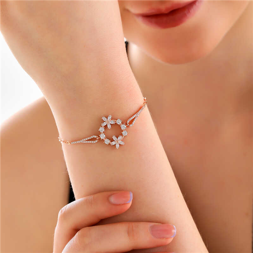 Silver Rose White Flower Women's Bracelet Why not express your feelings to your loved ones with an elegant flower patterned necklace? This stylish necklace, which is among the gift options that you can send to her on special occasions, is among the best ways to make your loved ones happy. Crafted with the highest quality, brightest, and most sparkling stones, the silver white flower women's bracelet is waiting for those who want to express their love once again, those who want to say "you are a flower." This specially designed silver white flower women's bracelet is made of 925 sterling silver. Rose plated silver. Rose plated silver women's bracelet models preserve their shine for a long time and oxidation is delayed. The average silver chain length is 20 cm. Like all women's silver bracelet models, the silver white flower women's bracelet is also handmade. Due to silver and precious stones, there may be a ± 10% deviation in the specified product weight. Bracelet Width: 2.10 cm Bracelet Length: 2.10 cm Average Weight: 3.50 gr.