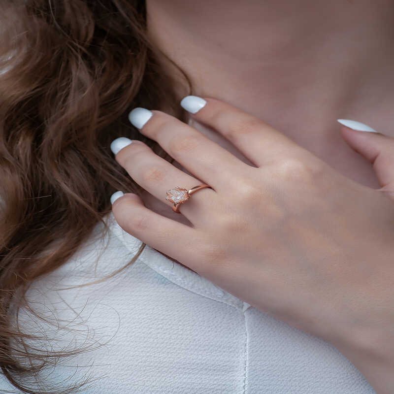 Silver Rose White Lotus Flower Ring The lotus flower is one of the most beautiful flowers that symbolizes spirituality, morality, and cleansing. The lotus flower, which blooms in the polluted waters of the rainforest, has managed to become a symbol of beliefs such as Buddhism and Hinduism with its beauty and purity. Moreover, the lotus flower is considered sacred in many ancient civilizations. Another detail that makes the lotus flower special is the region in which the flower grows. The lotus flower, which grows especially in swamps and muddy lands, can remain clean despite the polluted environment in which it grows. Able to clean even a single particle of dust that lands on it, the lotus flower greets those who encounter it with its pure white beauty. You can gift your loved ones or treat yourself with this silver white lotus flower ring, which is considered sacred in different cultures. This stylish ring is a perfect option for a birthday gift, Valentine's Day or special occasions. The ring is made of 925 sterling silver. The silver is rose plated. Like other rings, the silver white lotus flower ring is also handmade. Due to the silver and precious stones, there may be a ± 10% deviation from the average product weight. Width: 1.00 cm Length: 0.80 cm Average Weight: 3.20 gr.