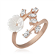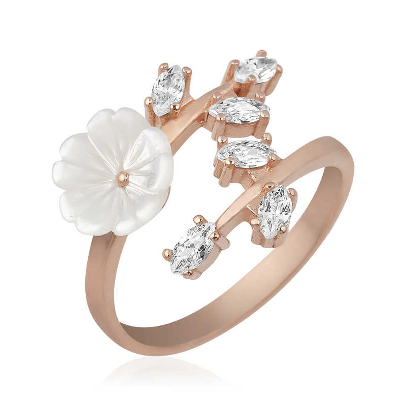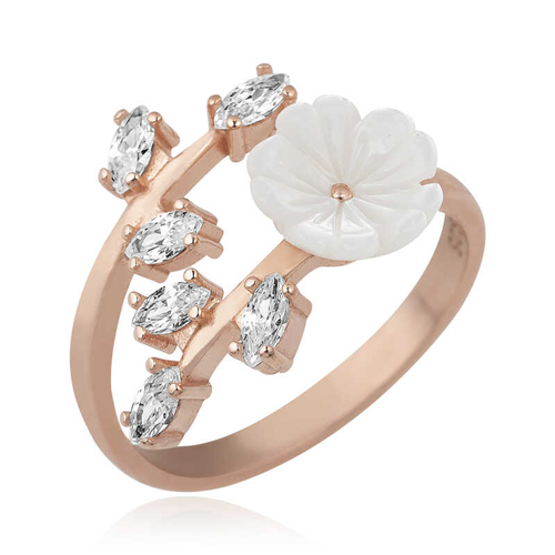 Silver Rose White Spring Flower Ring With the warming of the weather, nature, coming to life, heralds the arrival of spring. Trees covered in green, colorful flowers bloom and welcome us with their unique scents. Inspired by nature, this necklace symbolizes the rebirth of spring. This stylish necklace is a perfect option for a birthday gift, Valentine's Day or special occasions. The necklace is made of 925 sterling silver. Rose plated silver. Rose plated products give the silver a pink copper color. Like other necklaces, the silver spring flower necklace is produced by hand. Due to silver and precious stones, there may be a ± 10% deviation in the average product weight. Width: 1.50 cm Length: 2.00 cm Average Weight: 2.36 gr.