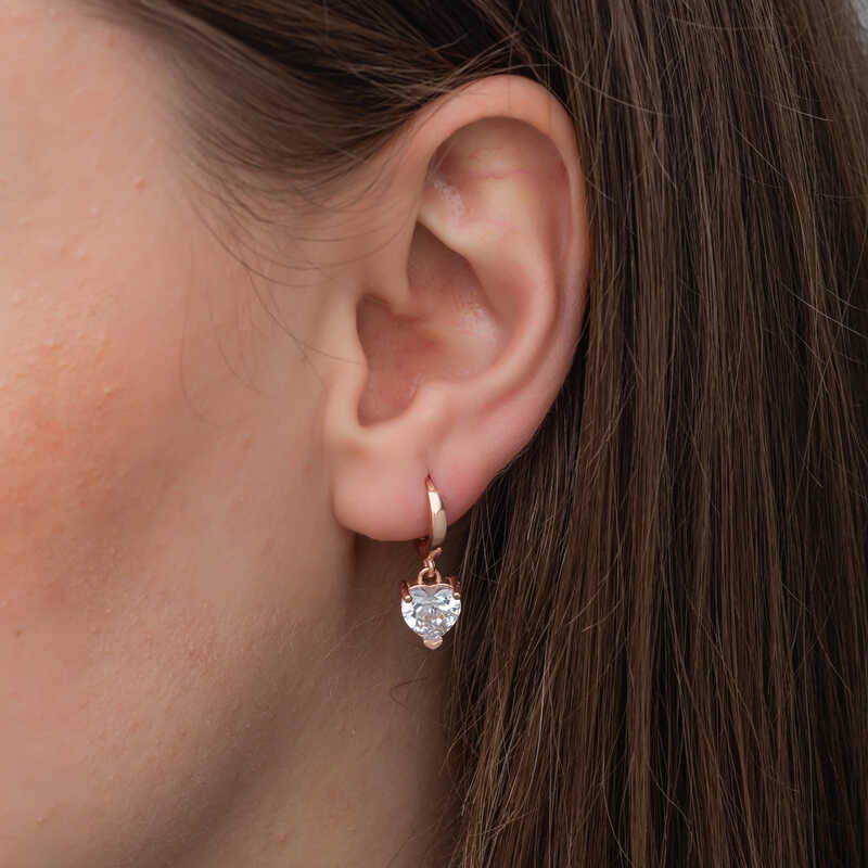 Silver Rose White Stone Heart Women's EarringsLet your love come to life on the skin of the woman you love with the heart earring model that expresses love with its heart pattern. Adorn your loved one with love with these heart earring that can be chosen by young lovers and those who feel young on special occasions. Heart patterned earrings that will be worn by both you and your loved ones will be one of the best gifts for your loved one. Heart women's earrings are made of 925 sterling silver. Rose plated on silver. Rose plated silver women's heart earrings preserve their shine for a long time and oxidation is delayed. The stone on the earring is zircon. Like all women's earrings, the silver white stone heart women's earrings are produced by handmade. Due to silver and precious stones, there may be a ± 10% deviation in the average product weight.Earring Width: 0.90 cmEarring Length: 2.40 cmAverage Weight: 4.10 gr