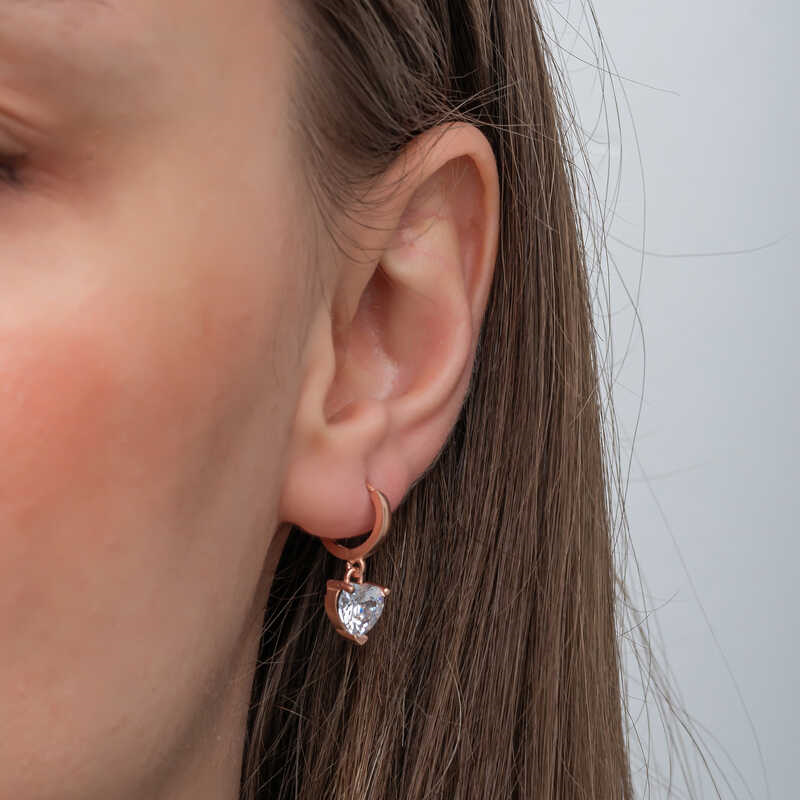 Silver Rose White Stone Heart Women's EarringsLet your love come to life on the skin of the woman you love with the heart earring model that expresses love with its heart pattern. Adorn your loved one with love with these heart earring that can be chosen by young lovers and those who feel young on special occasions. Heart patterned earrings that will be worn by both you and your loved ones will be one of the best gifts for your loved one. Heart women's earrings are made of 925 sterling silver. Rose plated on silver. Rose plated silver women's heart earrings preserve their shine for a long time and oxidation is delayed. The stone on the earring is zircon. Like all women's earrings, the silver white stone heart women's earrings are produced by handmade. Due to silver and precious stones, there may be a ± 10% deviation in the average product weight.Earring Width: 0.90 cmEarring Length: 2.40 cmAverage Weight: 4.10 gr
