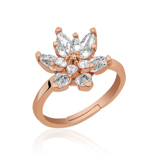 Silver Rose White Stone Lotus Flower Ring The lotus flower is one of the most beautiful flowers that symbolizes spirituality, morality, and cleansing. The lotus flower, which blooms in the polluted waters of the rainforest, has managed to become a symbol of beliefs such as Buddhism and Hinduism with its beauty and purity. Moreover, the lotus flower is considered sacred in many ancient civilizations. Another detail that makes the lotus flower special is the region in which the flower grows. The lotus flower, which grows especially in swamps and muddy lands, can remain clean despite the polluted environment in which it grows. Able to clean even a single particle of dust that lands on it, the lotus flower greets those who encounter it with its pure white beauty. You can gift a silver white lotus flower ring, which is considered sacred in different cultures, to your loved ones or to treat yourself. This stylish ring is a perfect option for a birthday gift, Valentine's Day, or special occasions. The ring is made of 925 sterling silver. Rose plated silver. Like other rings, the silver white lotus flower ring is also handmade. Due to silver and precious stones, there may be a ± 10% deviation from the average product weight. Width: 1.80 cm Length: 2.30 cm Average Weight: 2.50 gr.