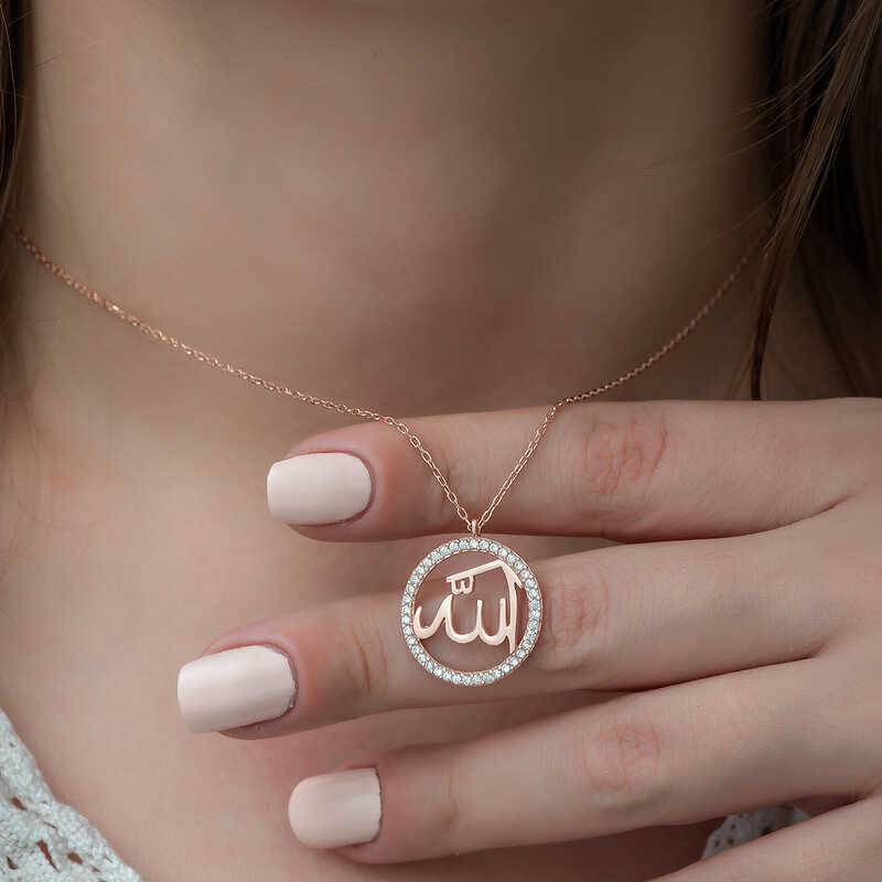 Silver Rose Arabic Allah Written Women's Necklace Religion is a system based on belief with a spiritual side. Allah is the absolute and only creator of the entire universe and all living and non-living beings. It is a special accessory that believers who hold these thoughts may want to wear and keep with them in their daily lives. This stylish necklace model will be a meaningful way to express spiritual feelings. This necklace with an elegant design will bring peace to you and your loved ones. The women's necklace with Allah inscribed in Arabic is made of 925 sterling silver. Rose plating is applied to the silver. Rose-plated silver women's necklace models preserve their shine for a long time and delay oxidation. The stones on the necklace are zircon. The average silver chain length is 45 cm. As with all silver women's necklace models, the silver rose Arabic Allah written women's necklace model is also handmade. Due to silver and precious stones, there may be ± 10% deviation in the specified product weight. Width: 2.00 cm Length: 2.00 cm Average Weight: 2.48 gr