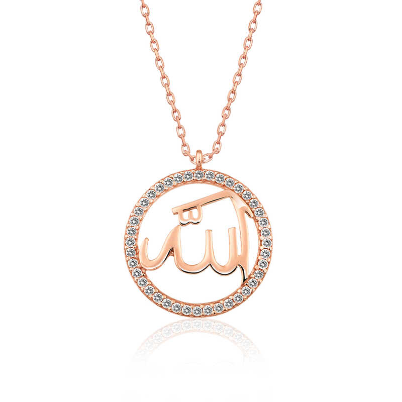 Silver Rose Arabic Allah Written Women's Necklace Religion is a system based on belief with a spiritual side. Allah is the absolute and only creator of the entire universe and all living and non-living beings. It is a special accessory that believers who hold these thoughts may want to wear and keep with them in their daily lives. This stylish necklace model will be a meaningful way to express spiritual feelings. This necklace with an elegant design will bring peace to you and your loved ones. The women's necklace with Allah inscribed in Arabic is made of 925 sterling silver. Rose plating is applied to the silver. Rose-plated silver women's necklace models preserve their shine for a long time and delay oxidation. The stones on the necklace are zircon. The average silver chain length is 45 cm. As with all silver women's necklace models, the silver rose Arabic Allah written women's necklace model is also handmade. Due to silver and precious stones, there may be ± 10% deviation in the specified product weight. Width: 2.00 cm Length: 2.00 cm Average Weight: 2.48 gr