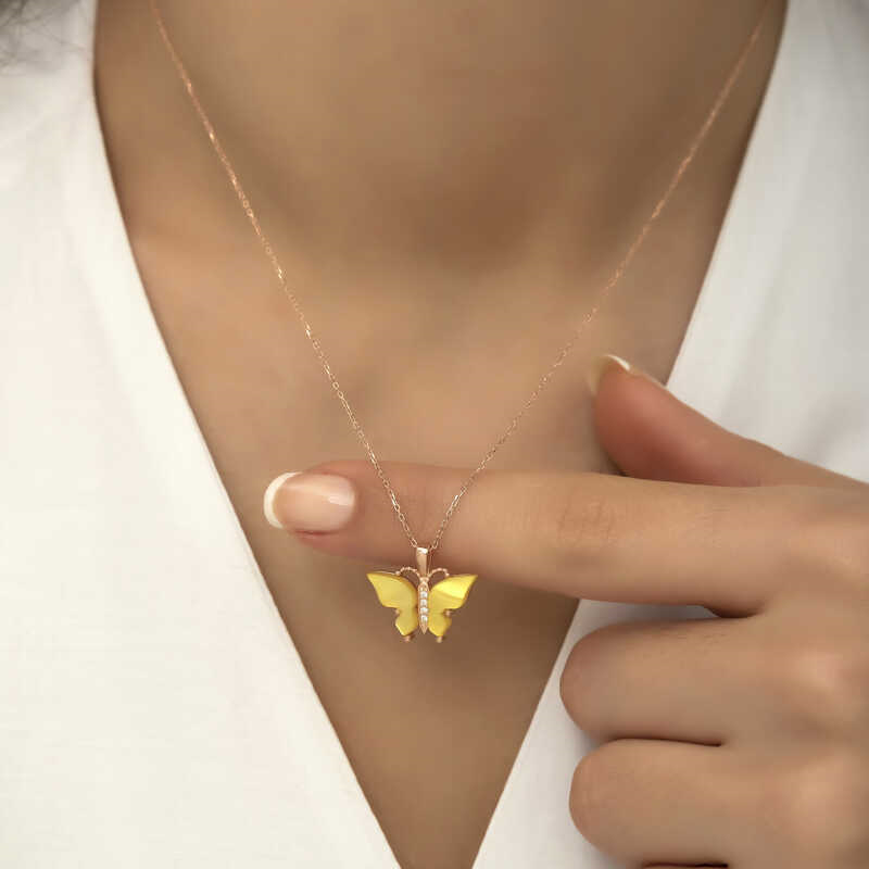 Silver Rose Yellow Tiger's Eye Stone Butterfly Women's Necklace Tiger's eye, a quartz group stone, is one of the most valuable healing stones. When polished, it gains a silky appearance. Tiger's eye stone is an iridescent stone. It is generally used as jewelry. Tiger's eye stone is known to be good for asthma diseases. It also acts as a relaxant in cases of nervous system disorders and has a relaxing effect. It is a wonderful emotional balancer. The butterfly is one of the most popular motifs preferred by women. It reminds lovers of the mystery of nature and the richness of human imagination. Symbolizing freedom, innocence and purity, butterflies are an expression of pure love and affection. The Anthracite Tiger's Eye Stone butterfly women's necklace, which you and your loved ones will enjoy wearing, will be one of the best gifts for your loved one. The necklace is made of 925 sterling silver. Rose plating is on the silver. Rose-plated silver women's necklaces preserve their shine for a long time and delay oxidation. The average silver chain length is 45 cm. As with all silver women's necklaces, the silver Anthracite Tiger's Eye Stone butterfly women's necklace model is also handmade. Due to silver and precious stones, there may be ± 10% deviation in the average product weight. Width: 1.70 cm Length: 1.50 cm Chain Length: 45 cm Weight: 1.83 gr.