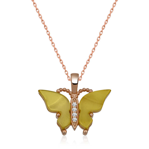 Silver Rose Yellow Tiger's Eye Stone Butterfly Women's Necklace Tiger's eye, a quartz group stone, is one of the most valuable healing stones. When polished, it gains a silky appearance. Tiger's eye stone is an iridescent stone. It is generally used as jewelry. Tiger's eye stone is known to be good for asthma diseases. It also acts as a relaxant in cases of nervous system disorders and has a relaxing effect. It is a wonderful emotional balancer. The butterfly is one of the most popular motifs preferred by women. It reminds lovers of the mystery of nature and the richness of human imagination. Symbolizing freedom, innocence and purity, butterflies are an expression of pure love and affection. The Anthracite Tiger's Eye Stone butterfly women's necklace, which you and your loved ones will enjoy wearing, will be one of the best gifts for your loved one. The necklace is made of 925 sterling silver. Rose plating is on the silver. Rose-plated silver women's necklaces preserve their shine for a long time and delay oxidation. The average silver chain length is 45 cm. As with all silver women's necklaces, the silver Anthracite Tiger's Eye Stone butterfly women's necklace model is also handmade. Due to silver and precious stones, there may be ± 10% deviation in the average product weight. Width: 1.70 cm Length: 1.50 cm Chain Length: 45 cm Weight: 1.83 gr.