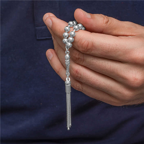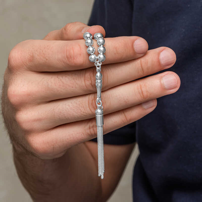Silver Round Men's Prayer Beads This stylish silver prayer beads specially designed for men combine elegance and traditional texture with a modern line. Standing out with its shiny round grains and detailed workmanship, the prayer beads are made of 100% 925 sterling silver. It has a classic and timeless design that appeals to all age groups. You can use the silver prayer beads with pleasure and choose them as a gift for birthdays, Valentine's Day, Father's Day or special occasions. All of our products are handmade. Due to silver and precious stones, there may be a ± 10% deviation in the average product weight. Width: 0.50 mm Length: 0.50 mm Prayer Length: 18.00 cm Average Weight: 18.00 Gr