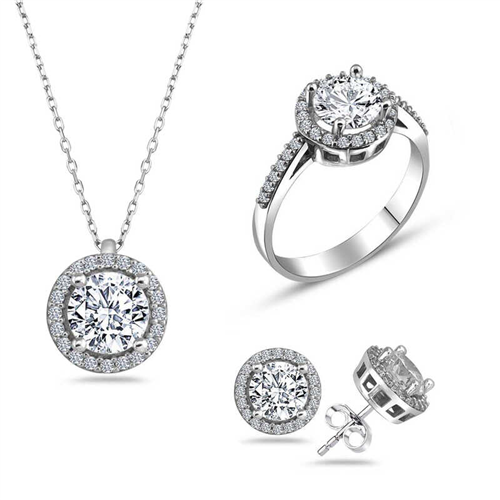 Silver Round Mounted Solitaire SetA round mounted set composed of elegant zircon stones can be an ideal gift option for special occasions such as Valentine's Day and Mother's Day. With its feminine design, it will add sparkle to your everyday style and glamour to your evening style. This dazzling set model with its sparkling and different design is made of 925 sterling silver. The silver is rhodium plated. Rhodium plated silver women's set models preserve their shine for a long time and oxidation is delayed. The stones on the silver round mounted set are zircon. As with all silver sets, the silver round mounted solitaire women's set is also entirely handmade. Due to silver and precious stones, there may be ± 10% deviation in product weight.Width: 1.20 cmLength: 1.20 cmAverage Weight: 9.20 gr.
