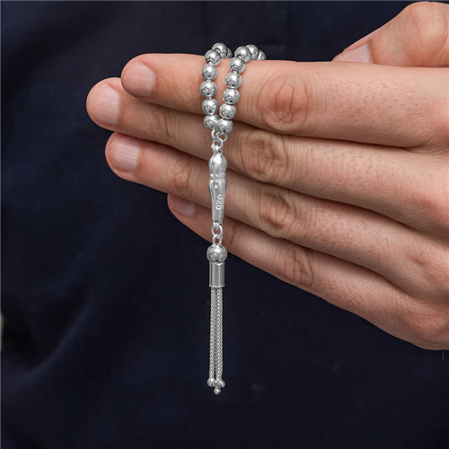 Silver Round Small Size Men's Prayer Beads This stylish and elegant prayer beads are made of high quality 925 sterling silver. With its small round silver beads, it is an elegant accessory that can be preferred for both daily use and special occasions. This men's prayer beads, which draws attention with its modern design and simple lines, is designed to be held comfortably in the hand. You can use this silver prayer beads with pleasure and choose it as a gift for birthdays, Valentine's Day, Father's Day or special occasions. All of our products are handmade. Due to silver and precious stones, there may be ± 10% deviation in the average product weight. Width: 0.40 mm Length: 0.40 mm Prayer Beads Length: 16.00 cm Average Weight: 12.70 Gr