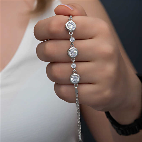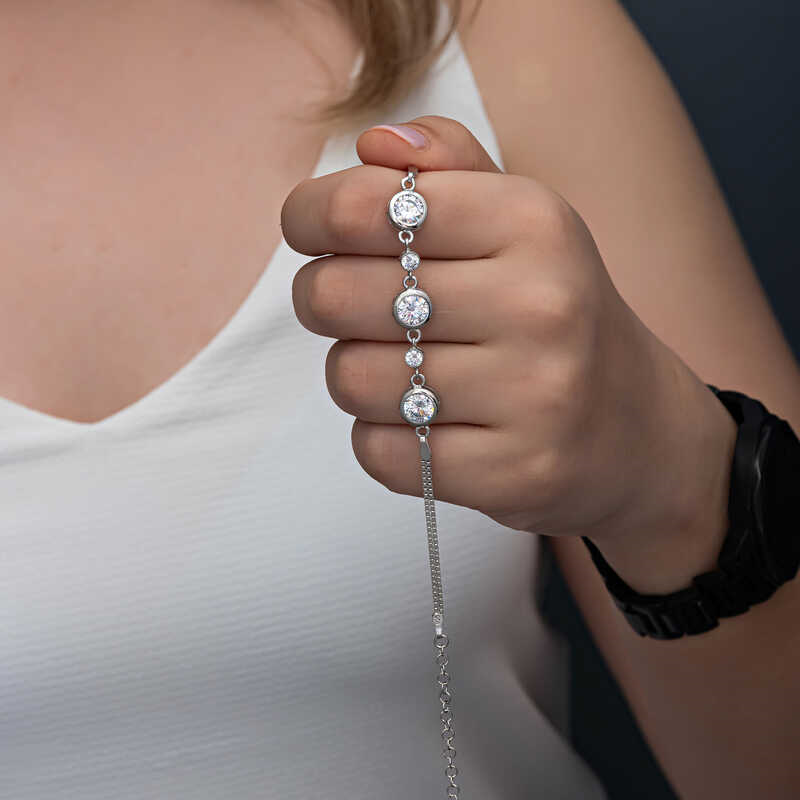 Silver Round Stone Women's BraceletThe bracelet models offered to you in a wide range, from traditional and flashy motifs to simple designs, manage to attract the appreciation of women of all styles. You can have wrist models that will allow you to achieve an elegant and at the same time stylish look, and manage to stand out in any environment, suitable for classic or sporty clothing. By examining the bracelet models offered to you with a wide model options, you can own silver jewelry that you can wear for a long time. Our bracelet models that you can also give as a gift to your loved ones on special occasions are waiting for you. Silver oval stone women's bracelet is made of 925 sterling silver. This bracelet is rhodium plated. Rhodium plated products preserve their shine for a long time, turning the silver into rhodium color. The stones on the bracelet are zircon. Like all silver women's bracelet models, the silver oval stone women's bracelet model is produced by hand. Due to silver and precious stones, there may be a ± 10% deviation from the average product weight.Bracelet Diameter: 0.90 cmBracelet Length: 21.00 cmAverage Weight: 6.20 gr.