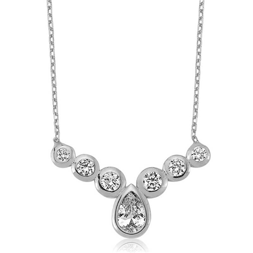 Silver Row Stone Drop Women's Necklace With the dazzling shine of silver and zircon, you can give a meaningful and beautiful gift with a drop necklace, a symbol of love and affection, and add meaning to your love. The row stone drop necklace, which you and your loved ones will enjoy wearing, will be one of the best gifts you can give to your lover due to its meaning. The row stone drop women's necklace is made of 925 sterling silver. Rhodium is coated on the silver. Rhodium-plated silver women's necklace models preserve their shine for a long time and oxidation is delayed. The stones on the necklace are zircon. The average silver chain length is 45 cm. Like all silver women's necklace models, the silver row stone drop women's necklace model is also produced by hand. Due to silver and precious stones, there may be ± 10% deviation in the specified product weight. Width: 2.40 cm Length: 1.50 cm Average Weight: 2.40 gr.