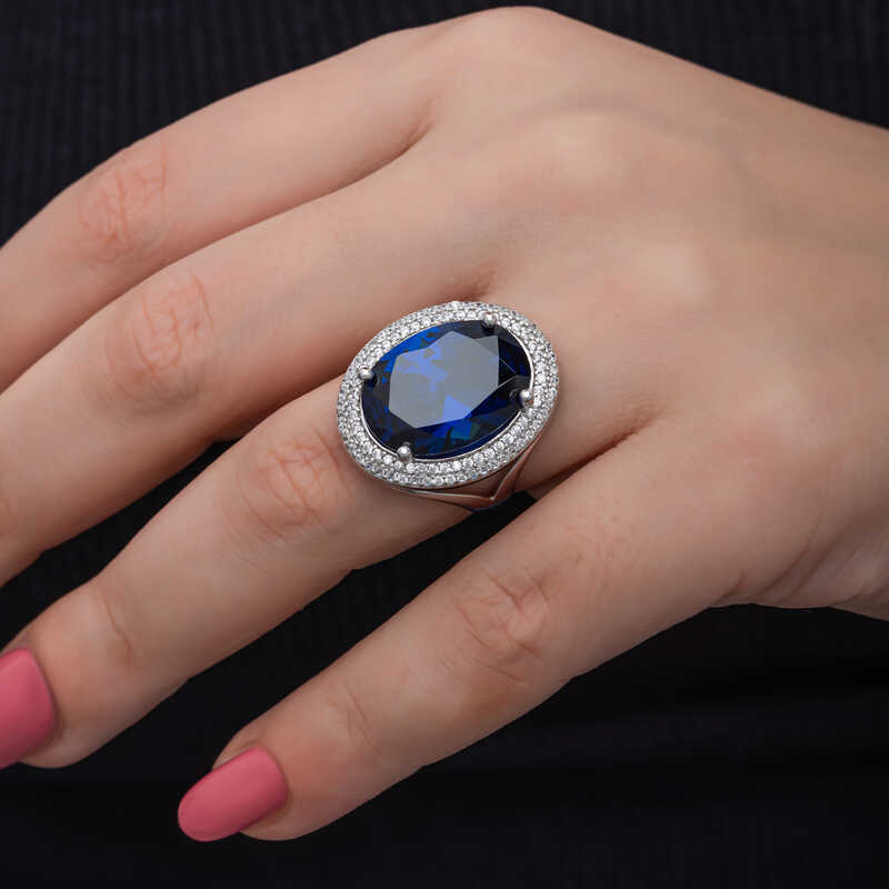 Silver Sapphire Stone Women's RingJewelry, which has been a symbol of your image for centuries, meets you in specially designed collections. Reflect your style with silver ring models that are with you at every moment, from your daily life to your special occasions. Start revealing the creative originality that speaks to your soul with these different, eye-catching designs. It is now very easy to stand out with your interesting style in every environment you enter with the silver ring types that can turn your dream combinations into reality. The sapphire stone women's ring is made of 925 sterling silver and is rhodium plated. All of our silver ring models are hand-made. Due to silver and precious stones, there may be a ± 10% deviation in the average product weight.Width: 2.10 cmLength: 2.80 cmAverage Weight: 7.80 gr.