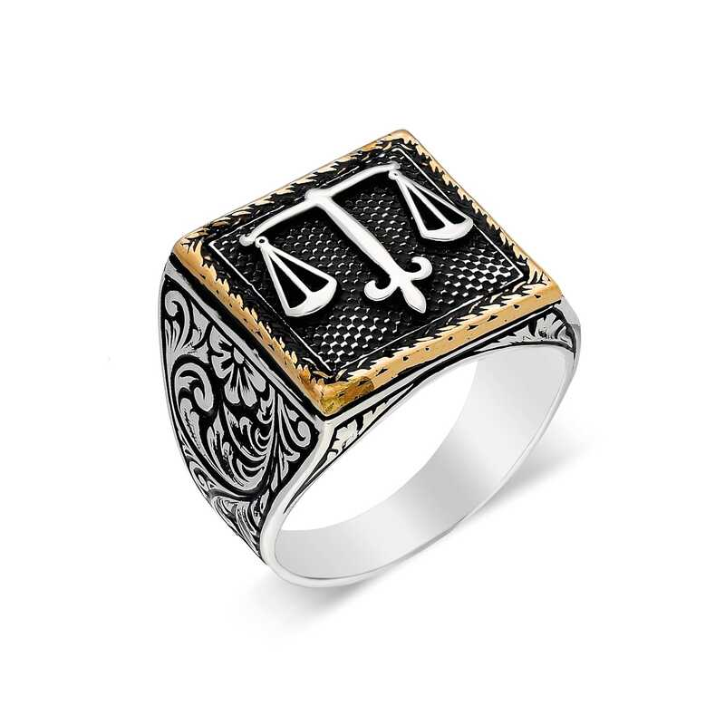 Silver Scales of Justice Men's Ring The silver scales of justice men's ring is a stylish accessory that you can use at any time of the day. You can gift this ring to yourself or your loved ones on your birthday, Father's Day or special occasions. The scales of justice men's ring model is made of 925 sterling silver. Oxidized silver is coated. Oxidized silver men's rings preserve their shine for a long time. Like all men's rings, the silver scales of justice men's ring model is handmade. Due to silver and precious stones, there may be a ± 10% deviation from the average product weight.Width: 2.30 cmLength: 2.50 cmAverage Weight: 15 gr.