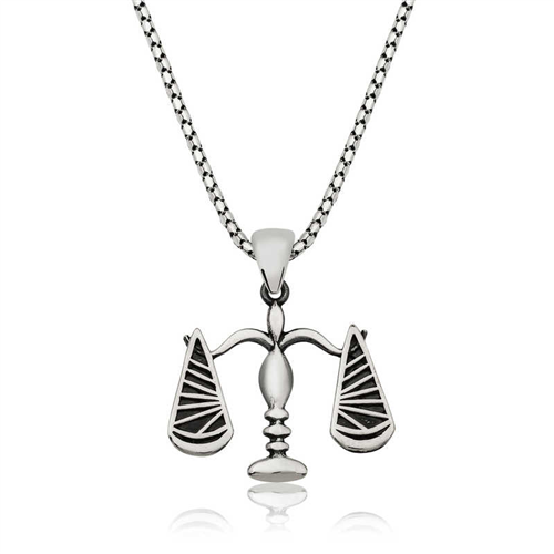 Silver Scales of Justice Necklace "Libra" symbolizes justice and the balanced distribution of rights. Scales of Justice necklace; Made of 925 sterling silver. Oxidized silver is coated. Oxidized silver gives the silver an aged appearance. The average chain length is 55 cm. As with all necklaces, this silver scales of justice necklace model is also produced entirely by hand. Width: 2.80 cm Length: 2.50 cm Avg. Weight: 10.50 gr