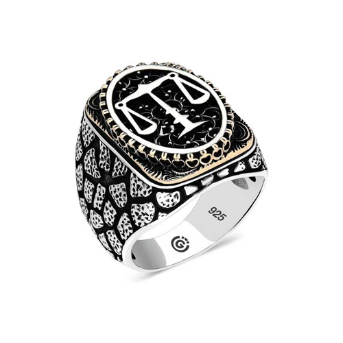 Silver Scales of Justice Oval Men's Ring The oval scales of justice men's ring model on silver is a stylish accessory that you can use at any time of the day. You can gift this ring to yourself or your loved ones on your birthday, Father's Day or special occasions. The scales of justice men's ring model is made of 925 sterling silver. Oxide coating is applied to the silver. Oxide coating preserves its shine for a long time. Like all men's rings, the silver scales of justice men's ring model is handmade. Due to silver and precious stones, there may be a ± 10% deviation from the average product weight.Width: 1.50 cmLength: 2.00 cmAverage Weight: 16 gr.