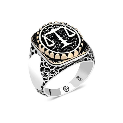 Silver Scales of Justice Oval Men's Ring The oval scales of justice men's ring model on silver is a stylish accessory that you can use at any time of the day. You can gift this ring to yourself or your loved ones on your birthday, Father's Day or special occasions. The scales of justice men's ring model is made of 925 sterling silver. Oxide coating is applied to the silver. Oxide coating preserves its shine for a long time. Like all men's rings, the silver scales of justice men's ring model is handmade. Due to silver and precious stones, there may be a ± 10% deviation from the average product weight.Width: 1.50 cmLength: 2.00 cmAverage Weight: 16 gr.