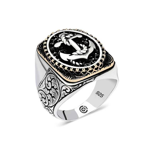 Silver Sea Anchor Oval Men's Ring The silver sea anchor oval men's ring model is a stylish accessory that you can use at any time of the day. You can gift this ring to yourself or your loved ones on your birthday, Father's Day or special occasions. The sea anchor men's ring model is made of 925 sterling silver. Oxide coating is applied to the silver. Oxide coating preserves its shine for a long time. Like all men's rings, the silver sea anchor men's ring model is handmade. Due to silver and precious stones, there may be a ± 10% deviation from the average product weight.Width: 1.50 cmLength: 2.00 cmAverage Weight: 16 gr.