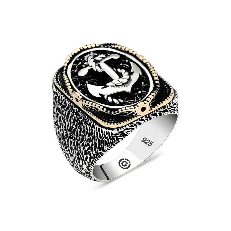 Silver Sea Anchor Oval Men's Ring The silver sea anchor oval men's ring model is a stylish accessory that you can use at any time of the day. You can gift this ring to yourself or your loved ones on your birthday, Father's Day or special occasions. The sea anchor men's ring model is made of 925 sterling silver. Oxide coating is applied to the silver. Oxide coating preserves its shine for a long time. Like all men's rings, the silver sea anchor men's ring model is handmade. Due to silver and precious stones, there may be a ± 10% deviation from the average product weight.Width: 1.50 cmLength: 2.00 cmAverage Weight: 16 gr.