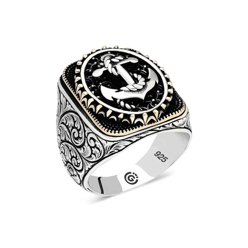 Silver Sea Anchor Oval Men's Ring The silver sea anchor oval men's ring model is a stylish accessory that you can use at any time of the day. You can gift this ring to yourself or your loved ones on your birthday, Father's Day or special occasions. The sea anchor men's ring model is made of 925 sterling silver. Oxide coating is applied to the silver. Oxide coating preserves its shine for a long time. Like all men's rings, the silver sea anchor men's ring model is handmade. Due to silver and precious stones, there may be a ± 10% deviation from the average product weight.Width: 1.50 cmLength: 2.00 cmAverage Weight: 16 gr.