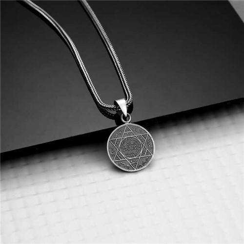Silver Solomon Seal Necklace We cannot end the wisdom of the Solomon seal, also known as the star of David or the six-pointed star. Magic does not affect the person who carries the seal. The person is protected from all kinds of evil eyes. It has many healing properties such as preventing the devil and his derivatives from affecting the person who carries it. The necklace is made of 925 sterling silver. Oxide coating is applied on silver. Silver necklaces with oxide coating preserve their shine for a long time. As with all silver necklaces, the silver Solomon seal necklace is handmade. It is sent with a 55 cm chain. Due to silver and precious stones, there may be ± 10% deviation in the average product weight. Necklace Diameter: 1.80 cm Avg. Weight: 9.30 gr. Chain length: 55 cm
