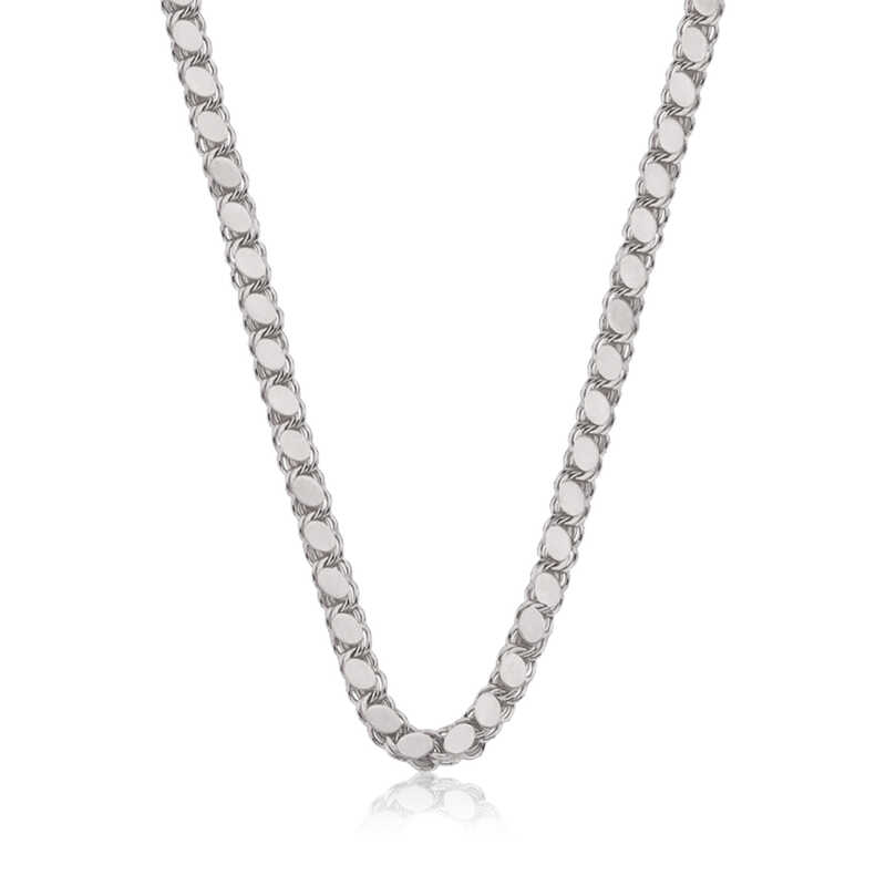 Silver Sequined Barley Chain Chain necklaces, preferred by women who want to look well-groomed in their daily lives, add elegance to even the simplest outfits. Sequined barley chain necklaces continue to impress with their elegance and style. Chain necklaces, which can be used with any combination, from stylish to sporty, have a wide range of uses, allowing you to create your style freely. The silver sequined barley chain is rhodium plated. Rhodium plating delays the tarnishing of the silver. As with all our silver models, the silver sequined barley chain model is produced entirely by hand. Due to silver and precious stones, there may be ± 10% deviation in the average product weight. Width: 0.4 mm Length: 55 cm Avg. Weight: 25.50 gr.