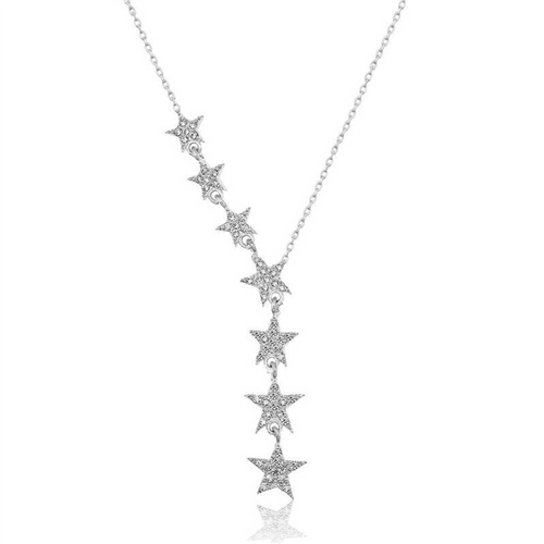 Silver Shooting Stars Women's Necklace Reminiscent of the bright shine of the night, the star symbolically represents the infinity of the universe, a point in the distance. It is the symbol of shine, light, illumination, and hope. Every person is special, every loved one is unique. How about making your loved ones happy with a silver row of stars women's necklace, the symbol of unique love and lifelong togetherness... The necklace is made of 925 sterling silver. Rhodium plated on silver. Rhodium plated silver necklaces preserve their shine for a long time and delay oxidation. The white stones on it are zircon. Like all silver women's necklace models, the silver shooting stars women's necklace model is produced by hand. Due to silver and precious stones, there may be a ± 10% deviation in the average product weight. Width: 1.00 cm Length: 1.00 cm Average Weight: 3.50 gr.